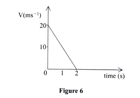 10.Figure 6 shows the velocity time graph of the motion of a stone thrown vertically upwards. From the graph determine the height reached by the stone 3mks