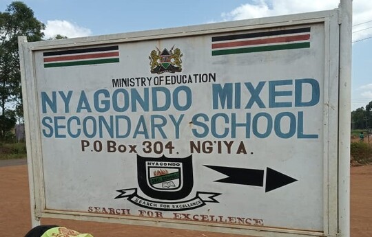 Nyagondo Secondary School is located in Siaya County, near Nyagondo, a few kilometers from Ng'iya and Wagai towns. It's on the roadway between Luanda and Siaya Town. It is located in the Gem Constituency. There are over 800 students enrolled. It is one of Siaya County's top-performing mixed-day and boarding secondary schools.