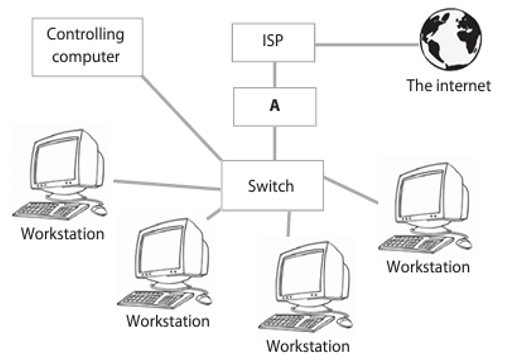b) The diagram shows how a network is connected to the internet.