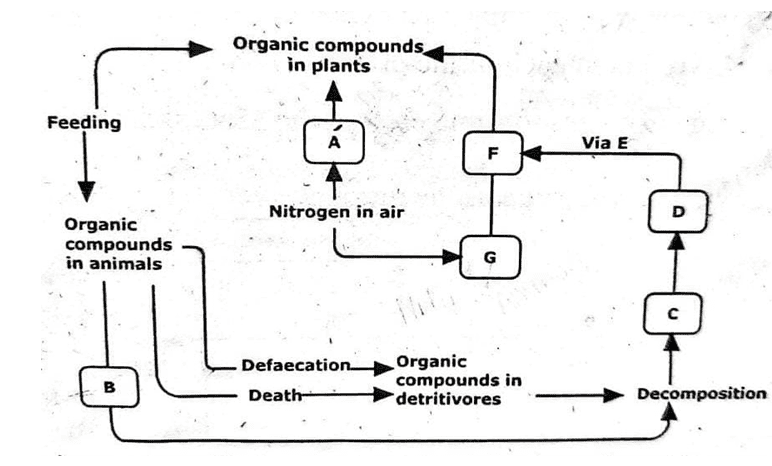 12. The diagram below represents a simplified trend of nitrogen circulation in an ecosystem.