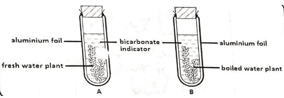 (d) Explain why bromothymol changed its colour from blue to yellow in tube A after 30 minutes. (1 mark)