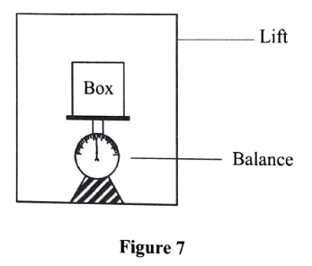 12. Figure 7 shows a box on a weighing balance. The balanced is placed on the floor of a lift.